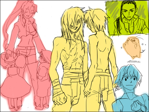 落書きも載せちゃう。螺旋の親父の目がつぶれたorz